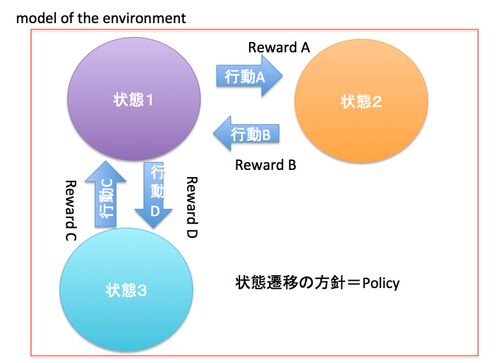皆さんこんにちは お元気ですか。私は元気です。今日は強化学習の勉強がてらメモを書いてみました。 個人的には最近、注目している分野で、ゴールがあるような(クラス分類やRegression) 機械学習と異なり、汎用的に色々問題が解けそうだからというのが理由…
